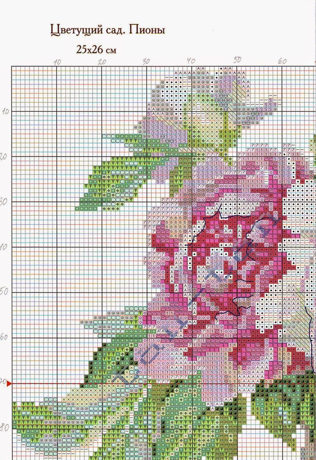 - Схема вышивки пионы;