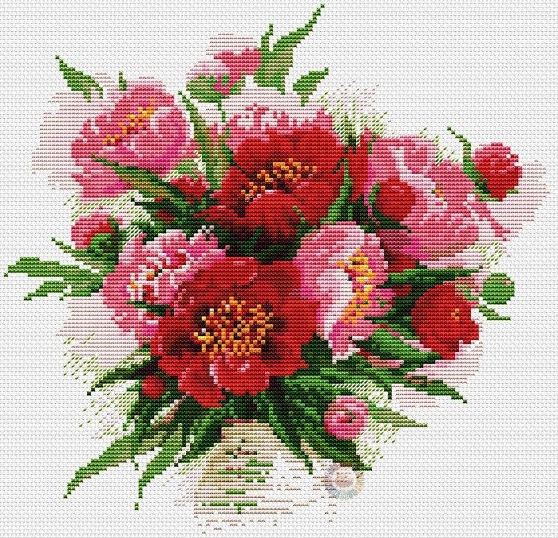 Вышивка крестом пионы в вазе