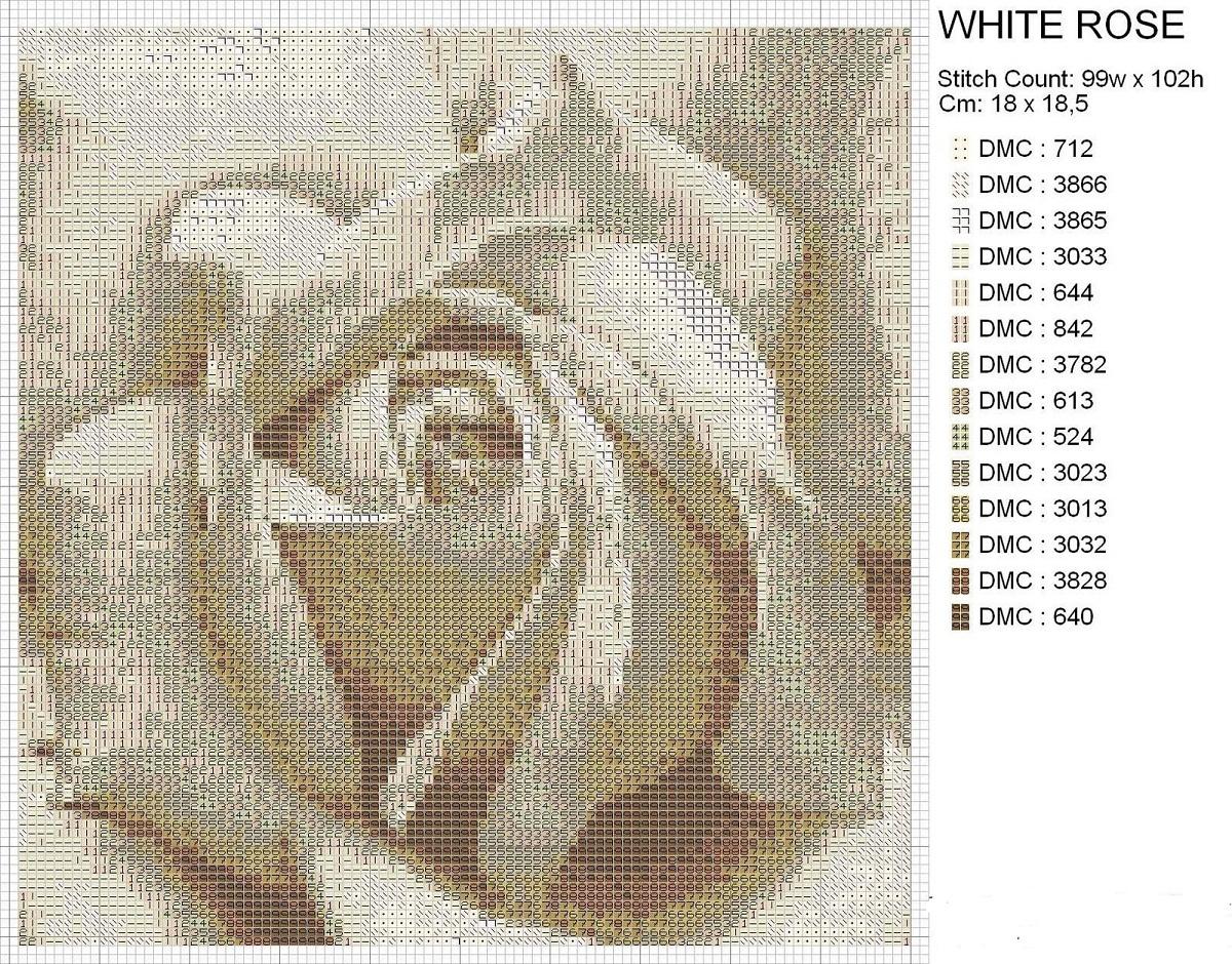 Достаточно популярными среди мастериц являются рисунки с изображением роз белого цвета