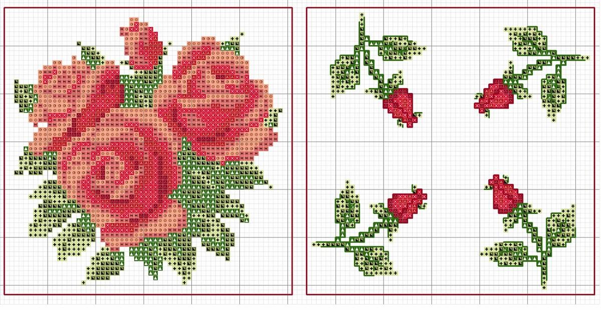 Как работать: схема вышивок розы крестом