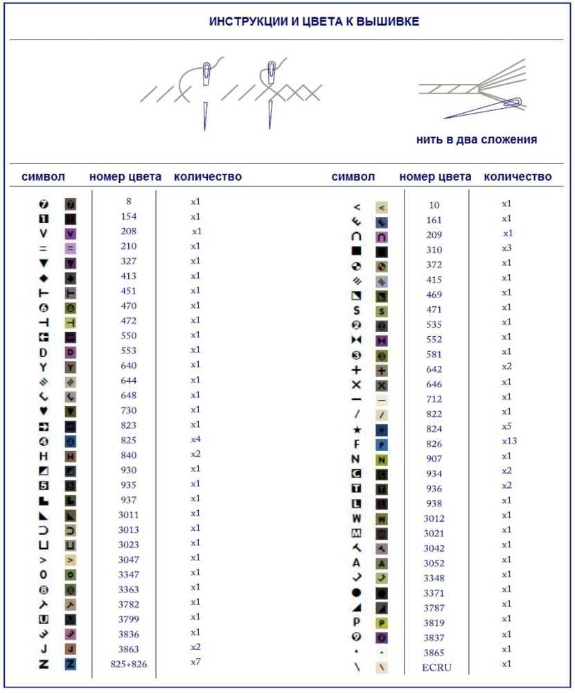 1. Схема вышивки крестиком 2. Ключ к схеме 3. Перевод ниток в палитру Гамма
