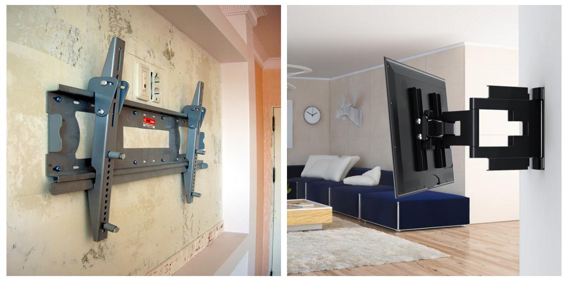 Кронштейны подходят для всех телевизоров, но не каждая матрица рассчитана на наклон. Например, на моделях с TFT картинка искажается даже при незначительном повороте, смотреть на них необходимо исключительно прямо.