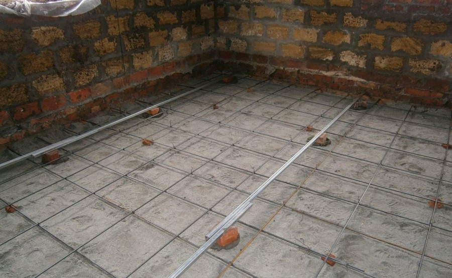 Армирование бетонной стяжки и установка маяков