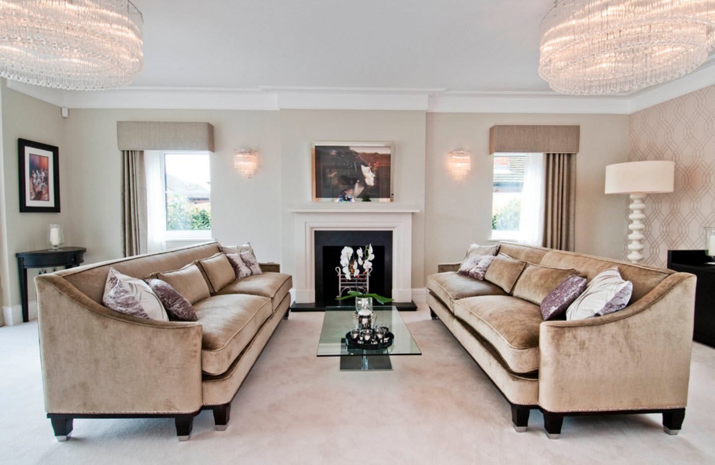 - Классический дизайн предполагает роскошь во всём. Текстиль в такой стилистике сочетает тяжёлые и лёгкие ткани, и дополняется декором. Обязательными моментами является симметрия и пастельная гамма.