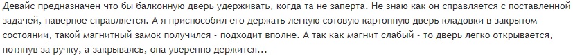 Еще этот замок в качестве защелки, можно поставить с наружной стороны на балконную дверь.