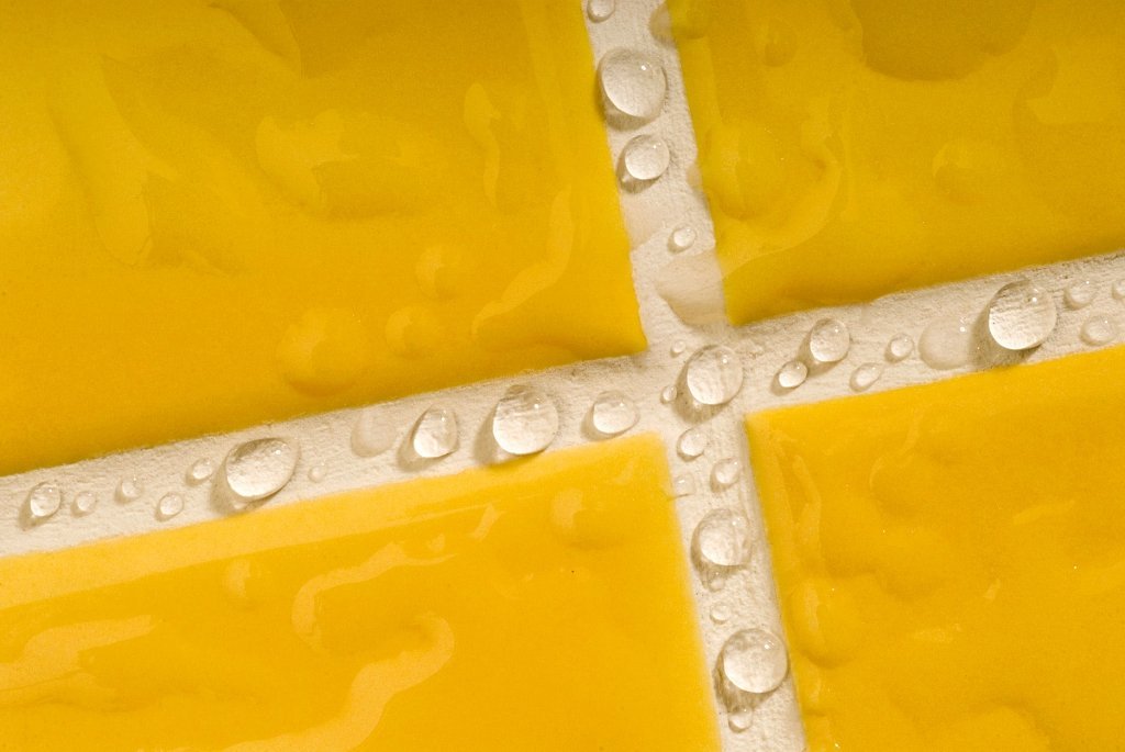 Плиточные швы лучше покройте бесцветным лаком. Отделка такого вида проникает в глубину материала и укрепляет его основание. Когда вода попадает на защищённую поверхность, то она не впитывается в материал, а собирается каплями.