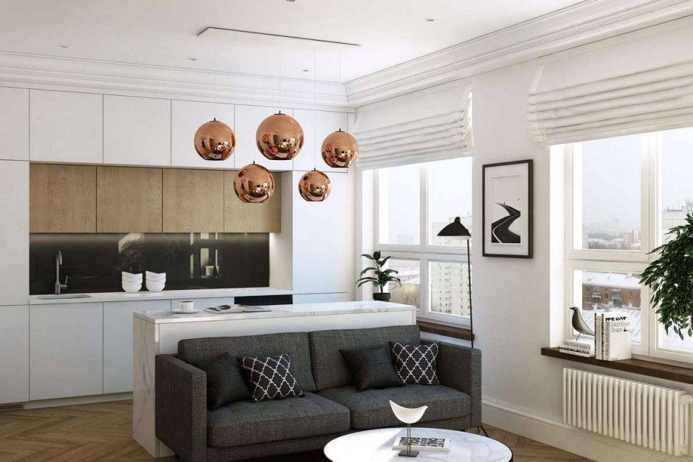 Чем больше комната, тем разнообразнее варианты размещения мебели. В этом случае дизайнеры могут реализовать нестандартное расположение, невзирая на форму конкретной модели