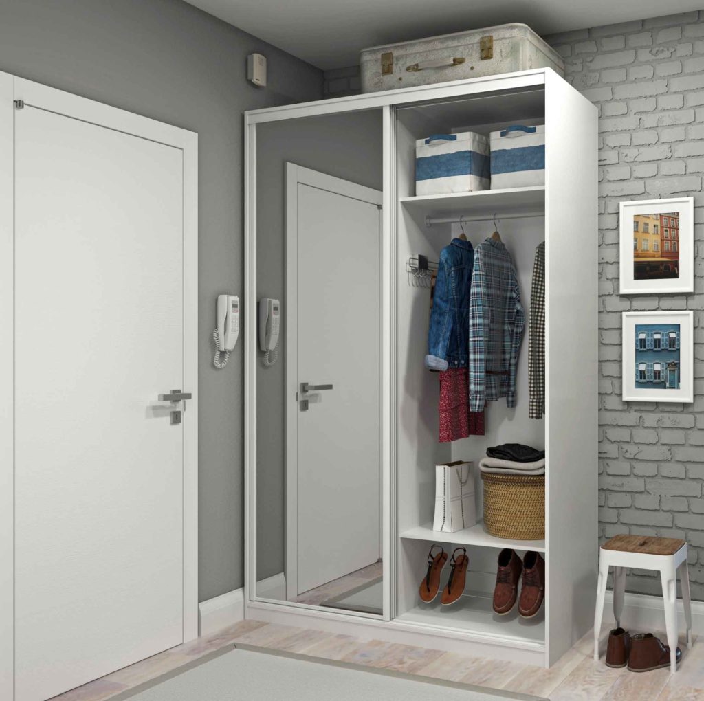 При наличии небольшого пространства квартиры и маленького помещения прихожей не обязательно оснащать ее большим шкафом. Эта мебель может быть установлена в любой другой комнате, где для нее достаточно места.
