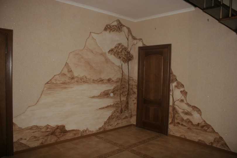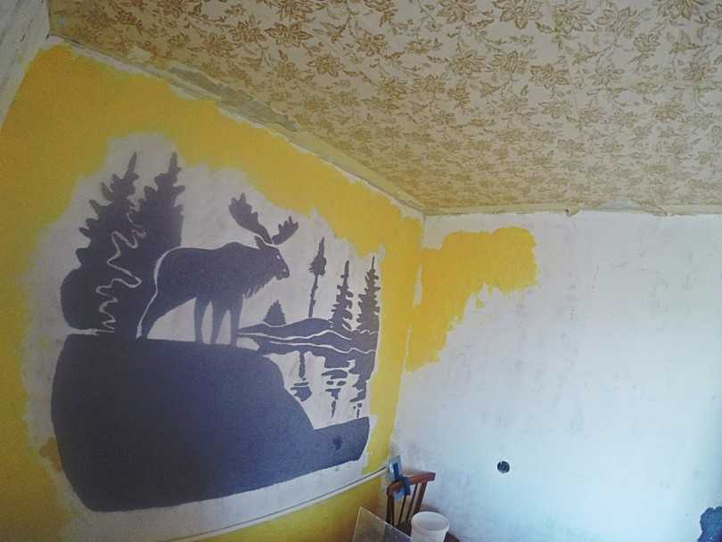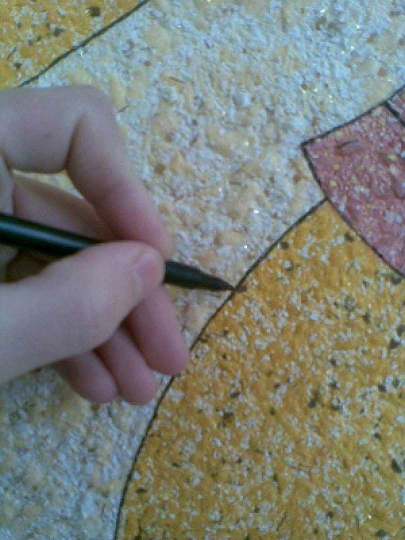Новичку будет трудно справиться с нанесением рисунков, причем основные трудности связаны с соблюдением пропорций на больших площадях. Можете воспользоваться небольшой хитростью: нанесите эскиз на кусок стекла, направьте на стену настольную лампу и выставьте перед ней стекло. В итоге на стене отразиться рисунок, который останется только перевести. Это нужно делать после грунтования, а уже потом приступать к покрытию жидкими обоями. После использования каждого цвета ожидайте не менее 4 часов.