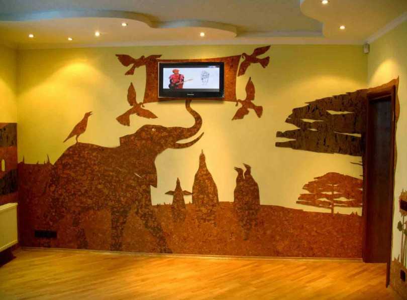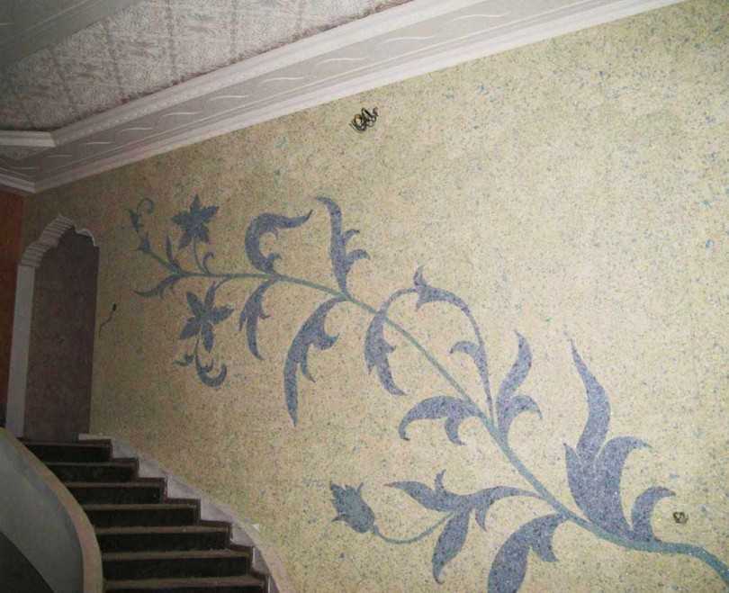 Жидкие обои легко деформируются, поэтому в местах, где они соприкасаются с какими-либо предметами, рекомендуется сделать декоративные накладки или выступы.