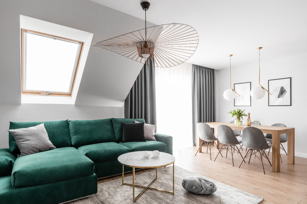 Давайте не будем бояться сочетать изумруд с черными или антрацитовыми элементами — оба эти цвета имеют много элегантности и таинственности, поэтому они могут быть отличной компанией для глубокого, экстатического зеленого. Однако самая изысканная комбинация — это смесь изумруда и золота, самого королевского из всех цветов — оно покорит яркость зеленого цвета и придаст ему великолепия.