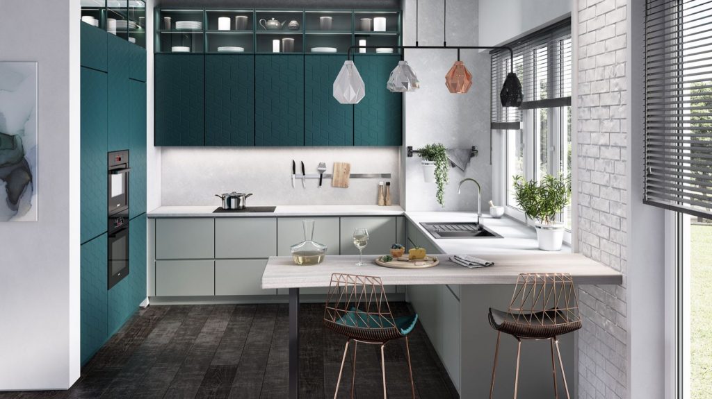 Изумруд также отлично подойдет как цвет плитки для кухни и ванной. Он будет отлично смотреться рядом с темным деревом, а также со стеклянными аксессуарами, такими как вазы, подставка для торта или вазы с фруктами.